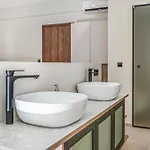 Las habitaciones del Achatis Suites Hersonissos, aptas para alérgicos con comodidades como servicio de planchado y climatizador. Se proporciona hervidor eléctrico, nevera y un horno, y un baño con ducha a ras de suelo y un inodoro separado también está incluido.